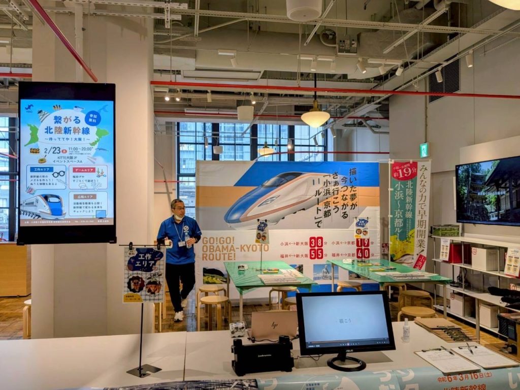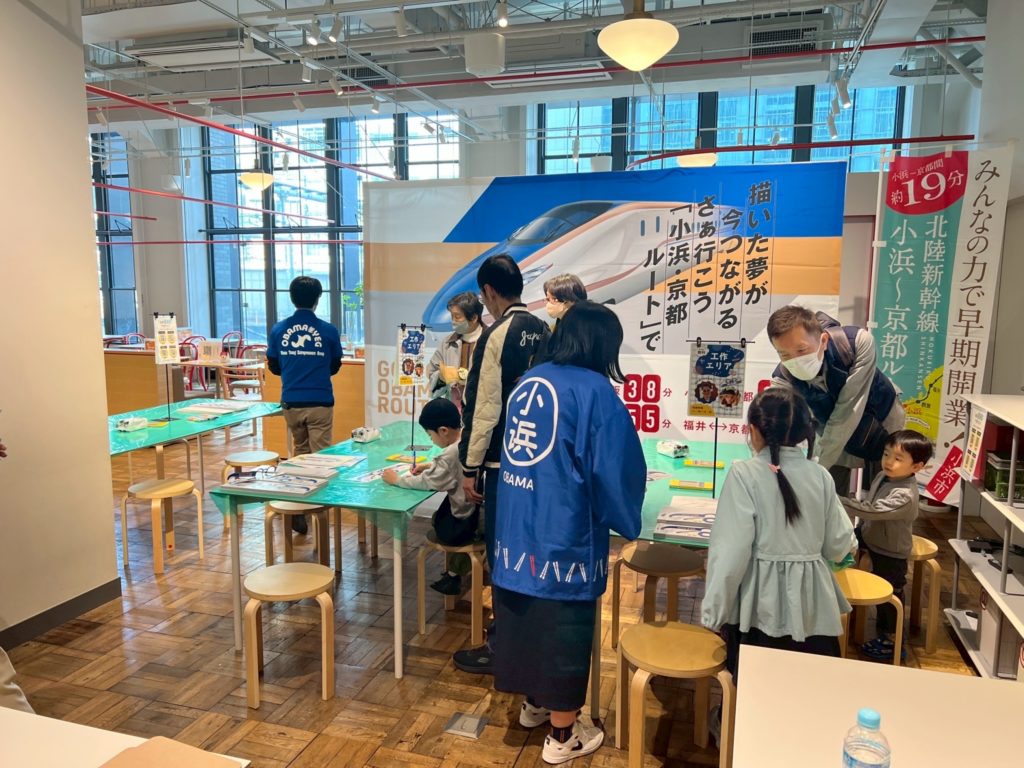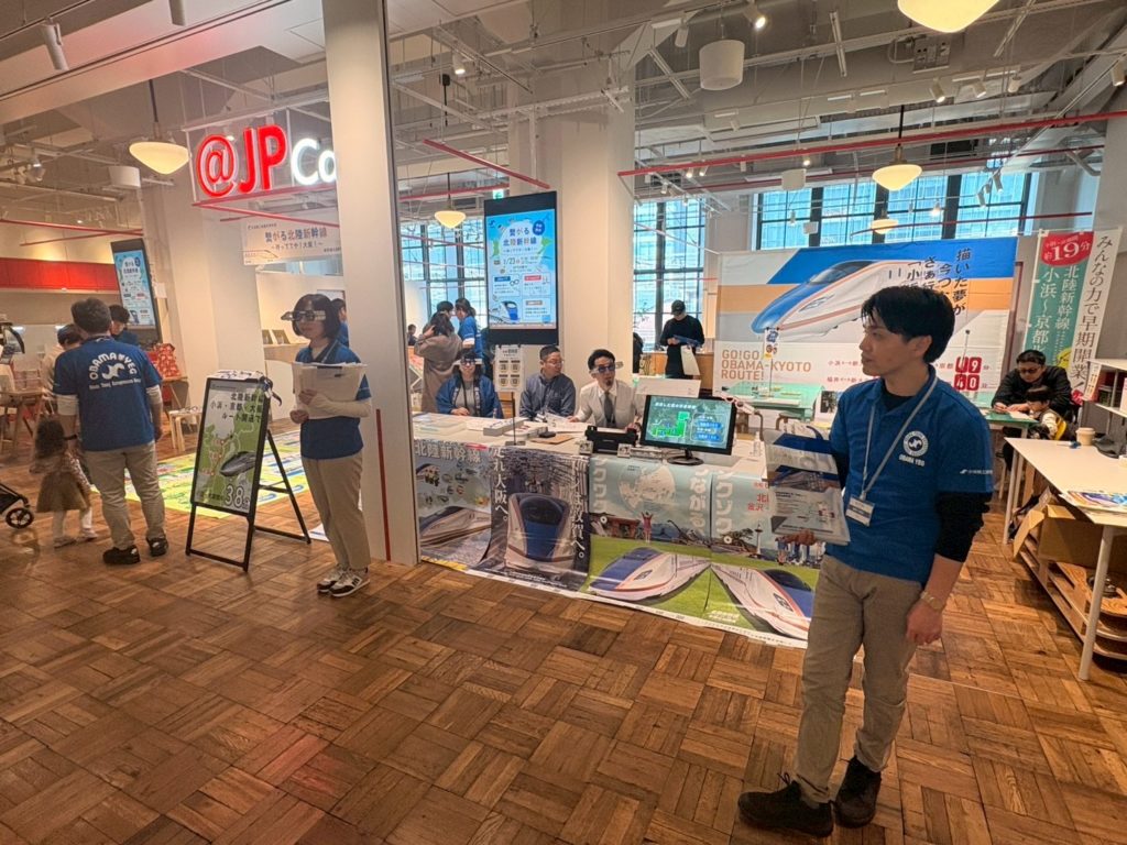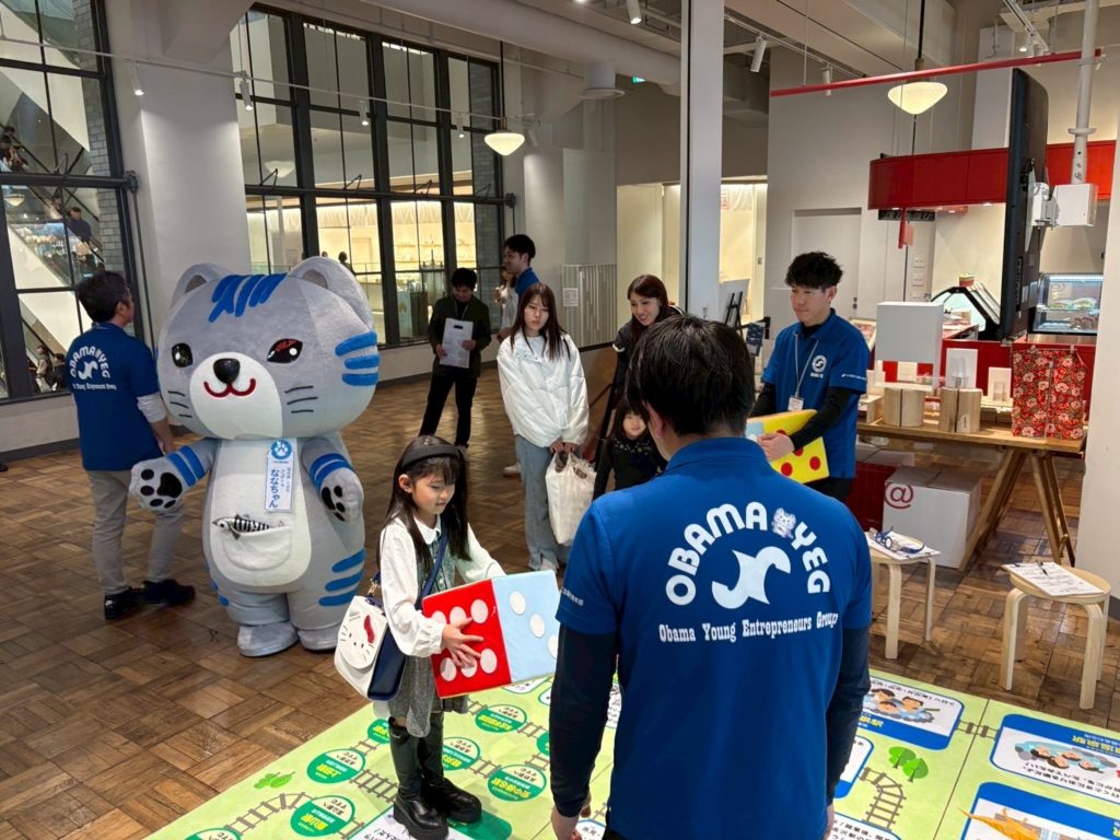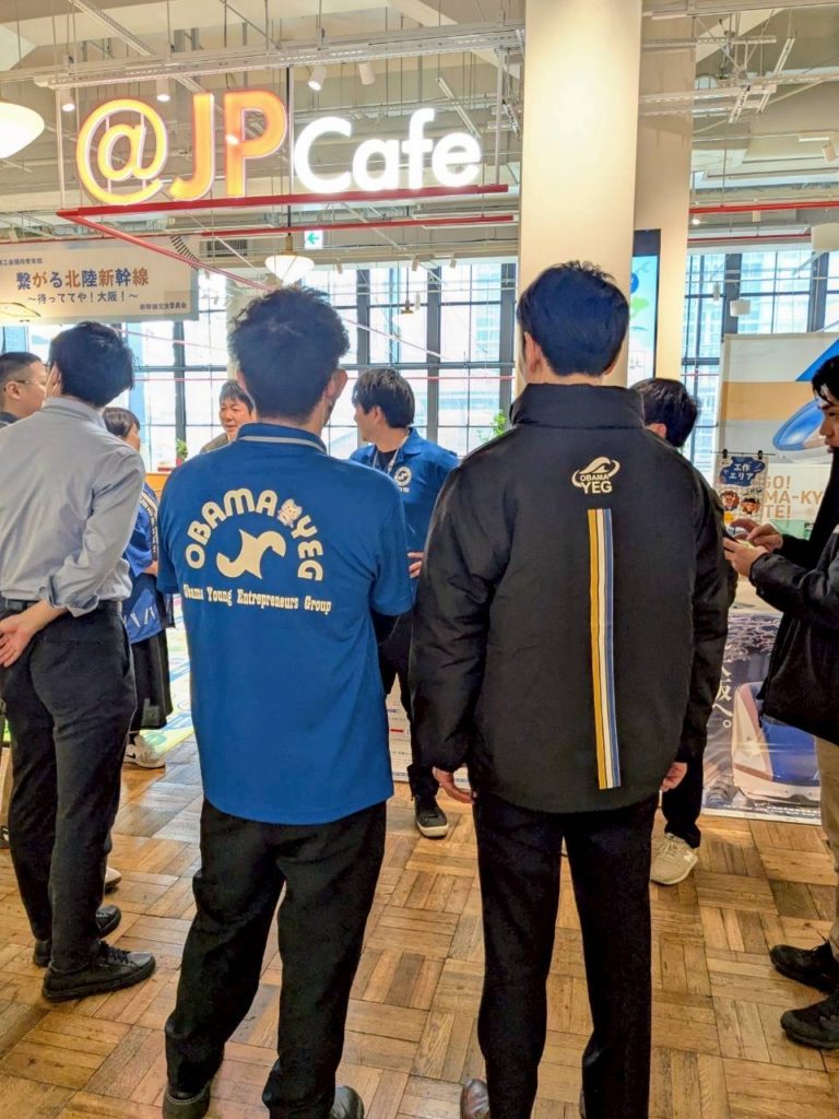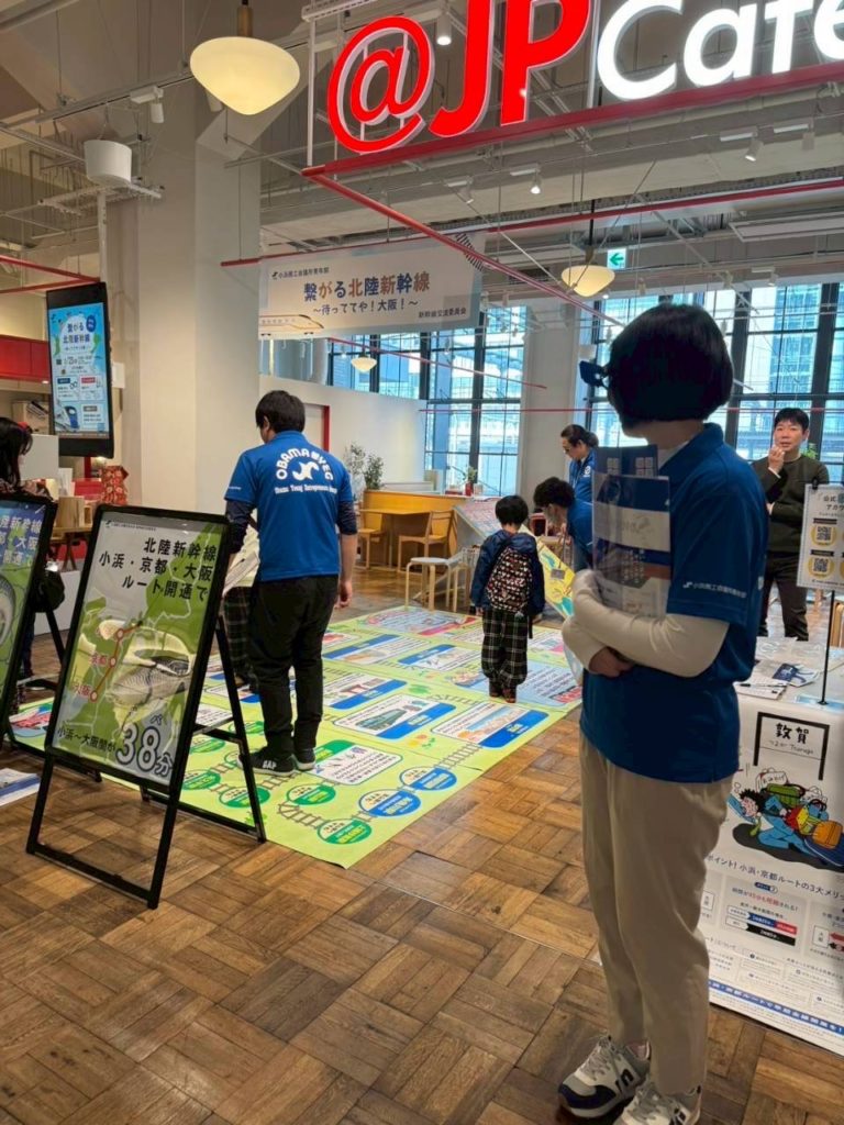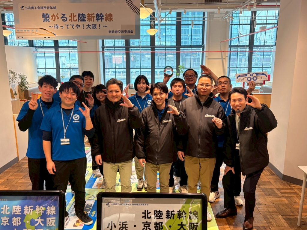 内 容:本例会は、北陸新幹線小浜・京都ルートの実現に向けた機運醸成を目的に、終着地点となる大阪の地で小浜市の魅力や青年部活動を広くPRし、多くの方々に関心を持っていただくきっかけづくりとして企画しました。当日はYEGメンバーが一体となり、来場された皆さまへ積極的に声掛けを行いながら交流を深めました。会場では北陸新幹線小浜・京都ルートの必要性や小浜の魅力を発信すると共に、幅広い世代の方に楽しんで頂くために新幹線すごろくや輪投げなどの体験型企画を実施し、多くのご家族連れにご参加頂きました。大阪の地での交流を通じて、小浜市の魅力や小浜・京都ルートへの想いを直接伝えることができ、地域の未来について考えて頂く貴重な機会となりました。