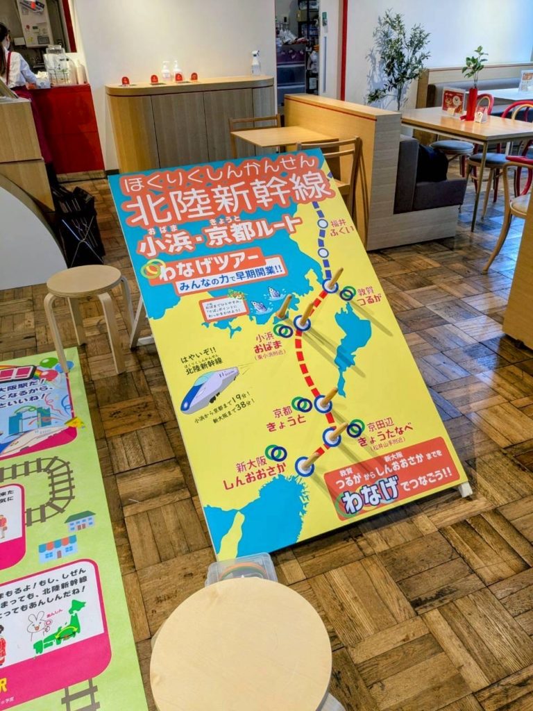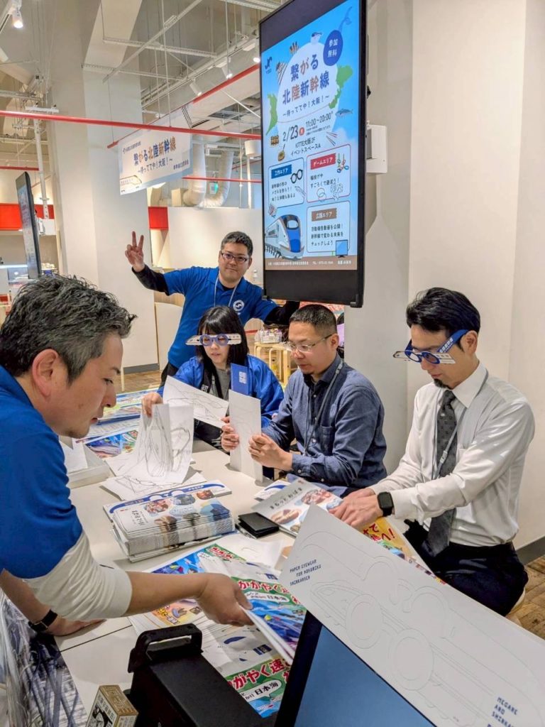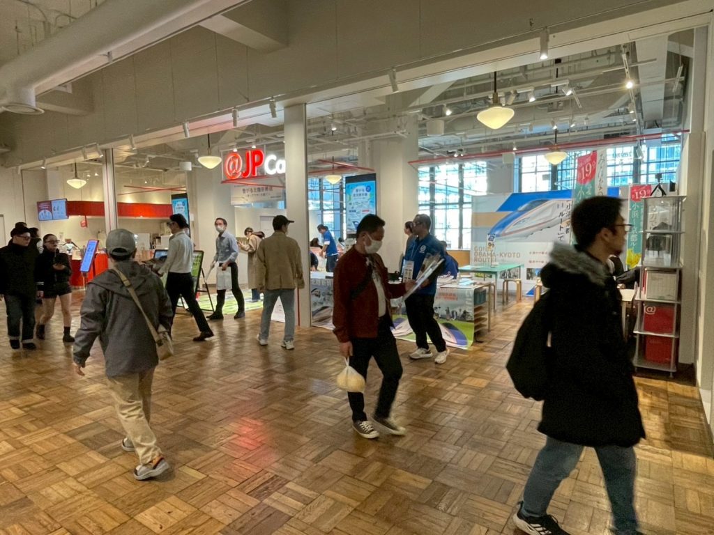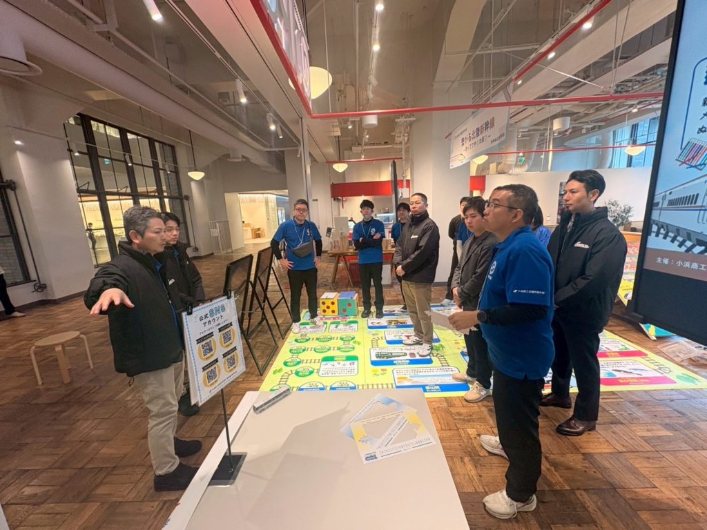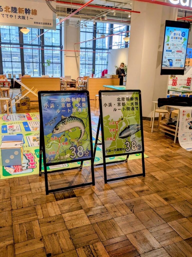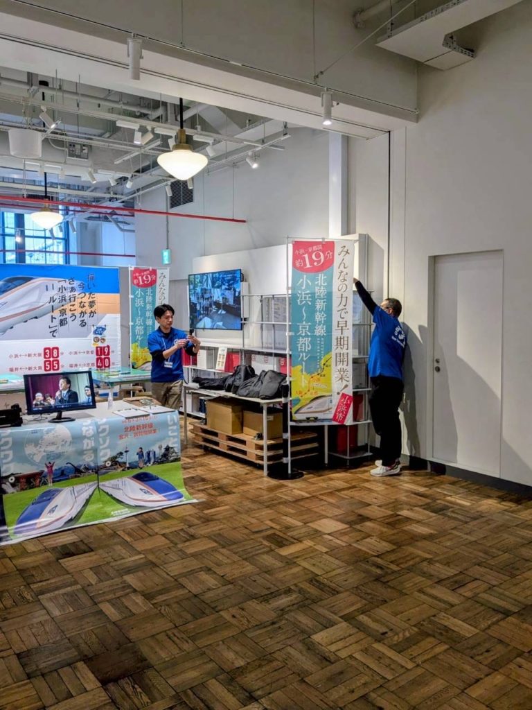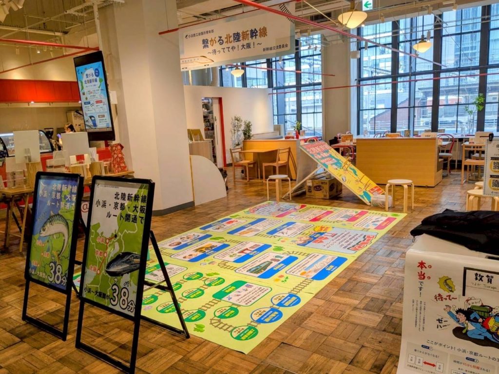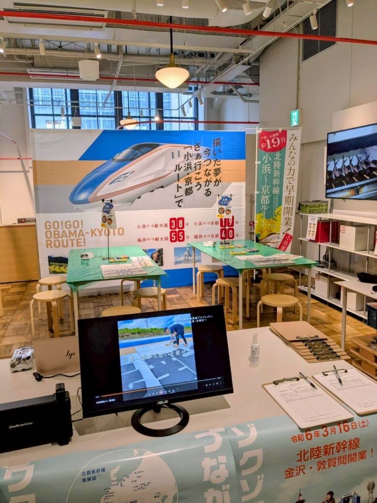 内 容:本例会は、北陸新幹線小浜・京都ルートの実現に向けた機運醸成を目的に、終着地点となる大阪の地で小浜市の魅力や青年部活動を広くPRし、多くの方々に関心を持っていただくきっかけづくりとして企画しました。当日はYEGメンバーが一体となり、来場された皆さまへ積極的に声掛けを行いながら交流を深めました。会場では北陸新幹線小浜・京都ルートの必要性や小浜の魅力を発信すると共に、幅広い世代の方に楽しんで頂くために新幹線すごろくや輪投げなどの体験型企画を実施し、多くのご家族連れにご参加頂きました。大阪の地での交流を通じて、小浜市の魅力や小浜・京都ルートへの想いを直接伝えることができ、地域の未来について考えて頂く貴重な機会となりました。